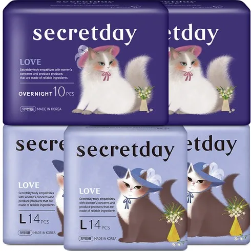 시크릿데이 러브 중형 16p x 3팩 + 대형 14p x 2팩 + 오버나이트 10p, 1세트